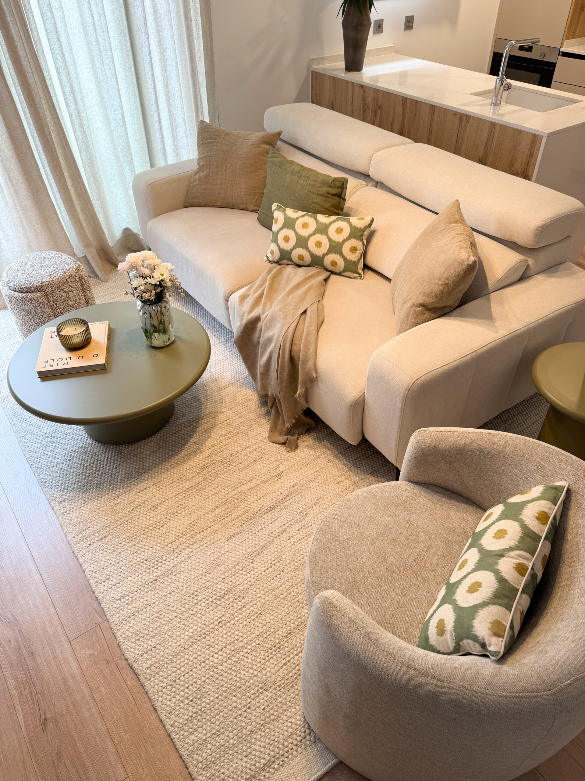 Finalmente, el estilismo aportó la capa emocional: texturas naturales, paleta cálida y piezas contemporáneas con toques atemporales, logrando un espacio acogedor que refleja nuestra filosofía: cada rincón cuenta una historia y habla de quienes lo habitan.