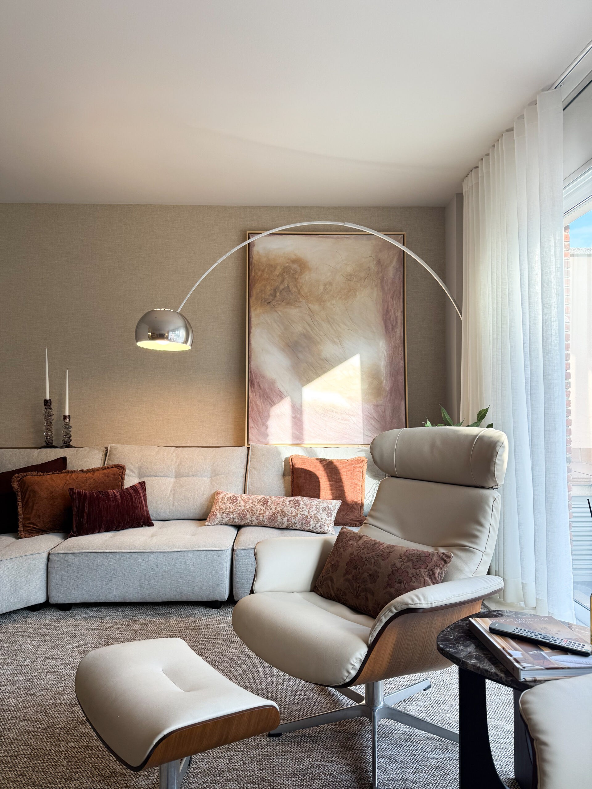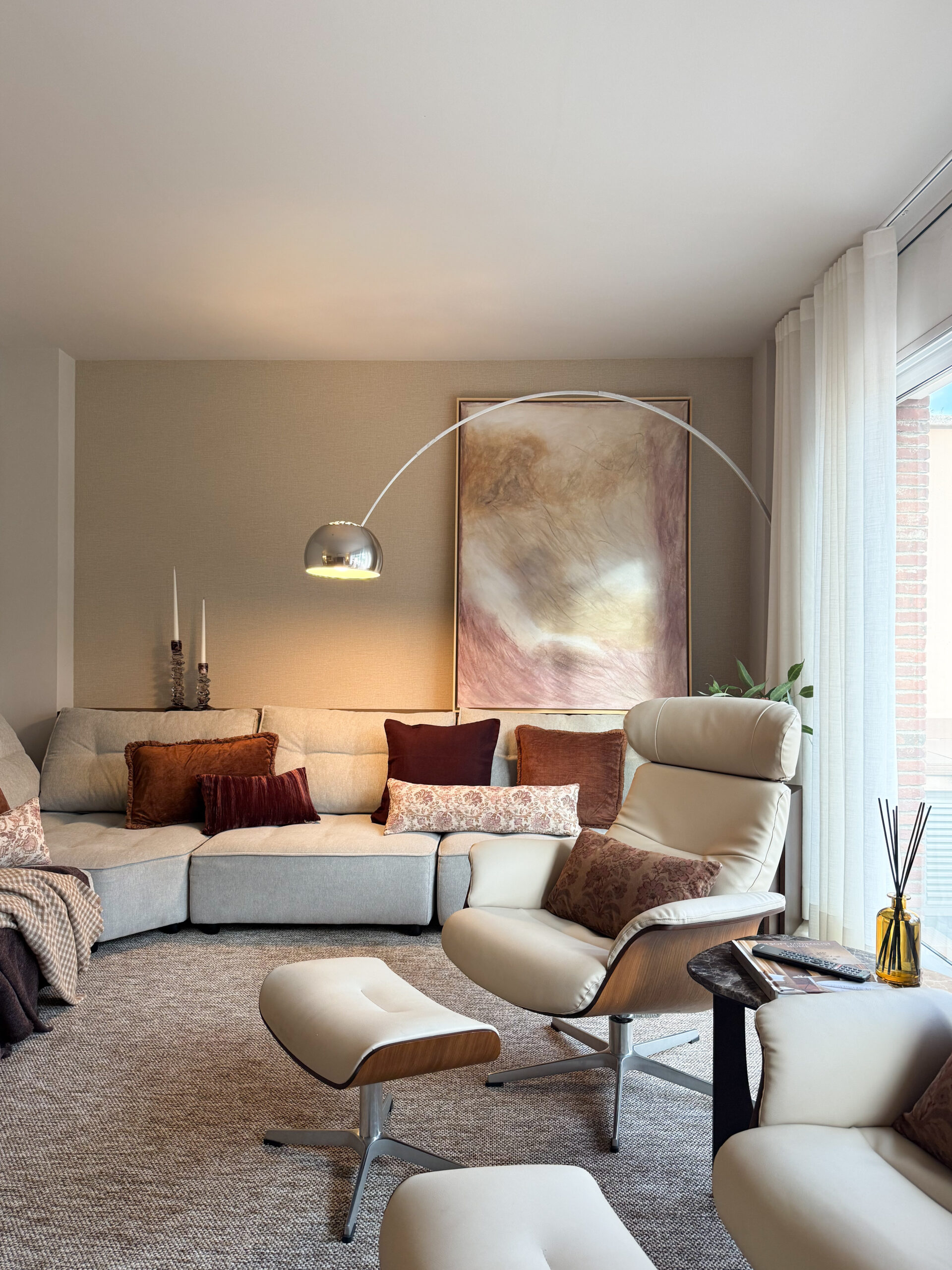 Para completar la transformación, se retapizaron las butacas auxiliares y se diseñaron cortinas a medida, aportando calidez y un acabado envolvente.